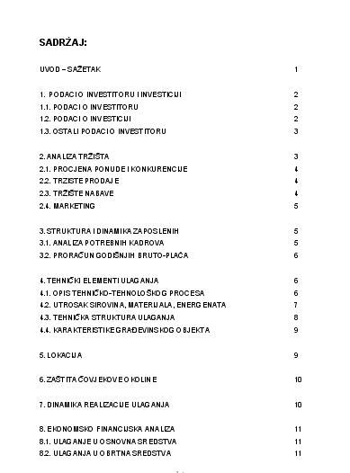 gdje je "poslovni plan" proizvoljni sastavak na 5 - 6 stranica, u nastavku
