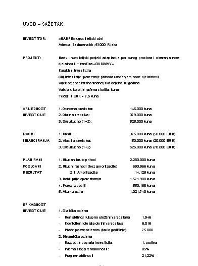 gdje je "poslovni plan" proizvoljni sastavak na 5 - 6 stranica, u nastavku