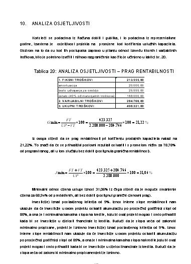 Poslovni planovi - ANALIZA OSJETLJIVOSTI