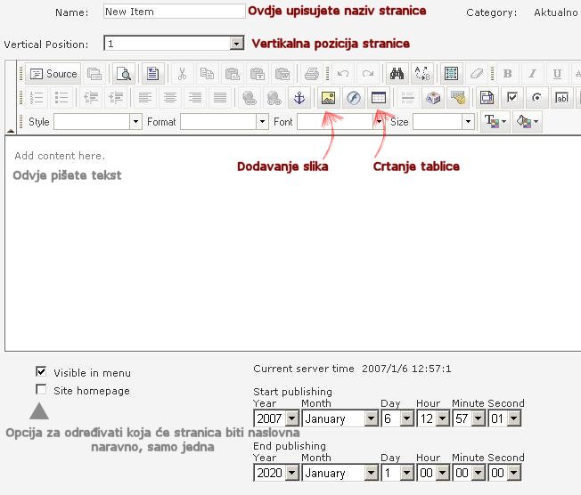 Kada ste to napravili otvara Vam se stranica za editorom u kojemu uređujete svoj
