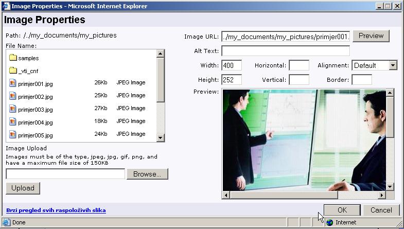 strani prozora vidite već uploadane slike na Vaš hosting.
